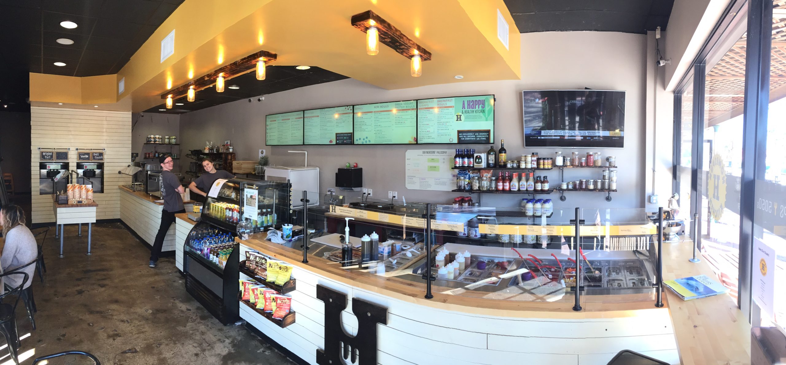 As posted in the previous post, the dream has always been to help people enjoy eating healthy on the go.  Angela and I started Happy Cup to get our feet wet, offering a healthier alternative for dessert.  The plan has always been to either evolve Happy Cup or open new healthy restaurants along the way.  Angela and I fell in love with Atlantic Beach and the community has been so supportive, we wanted to evolve our first location rather than start something different and new somewhere else.  We’ve done our best to honor our Happy Cup roots with the re-design while at the same time expand our offerings.  We hope you agree!