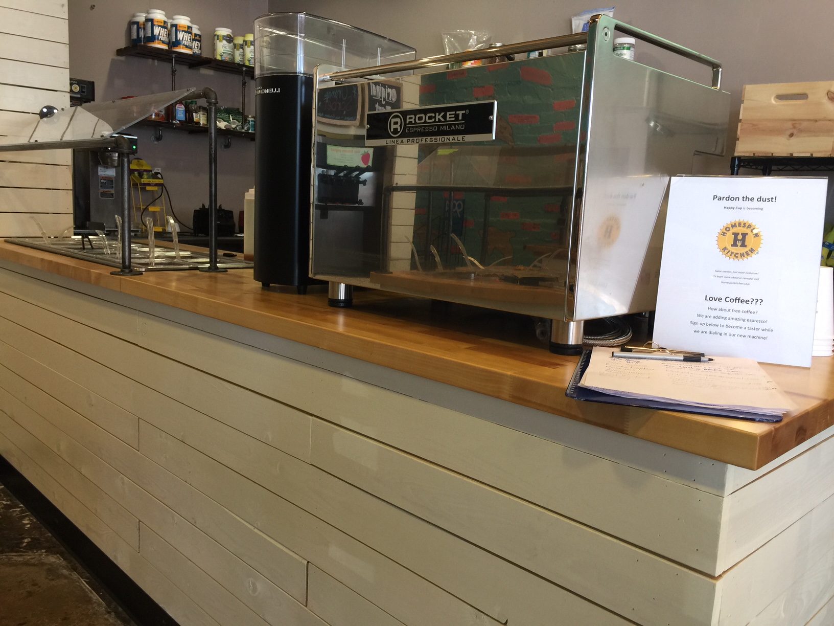 The espresso installation and technology upgrades are not complete yet however we have made great strides on the remodel.  We have been making all the changes and updates without closing the store so things have been stretched out a bit however we are targeting the beginning of March to have everything complete.