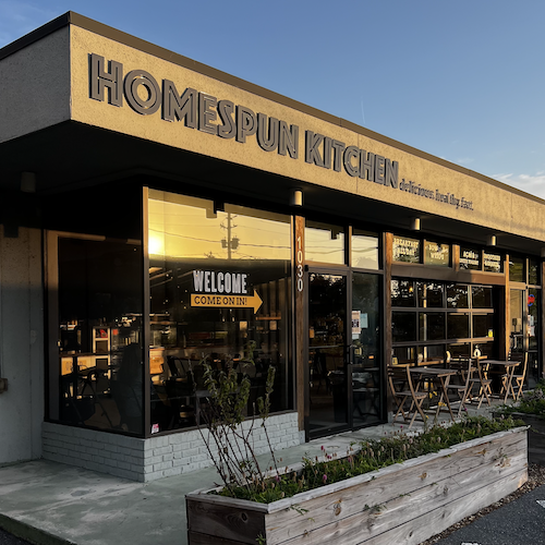 Homespun makes nearly everything in-house — dressings, marinades, sauces, syrups, roasted veggies, proteins, and even our bread. No powdered mixes. No bottled shortcuts. Just real ingredients prepared fresh every day.